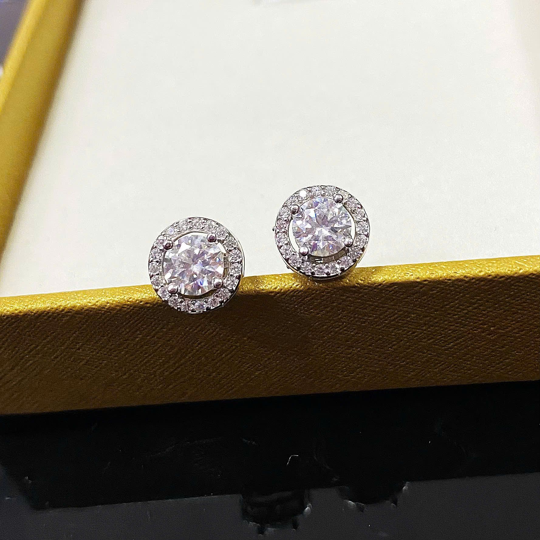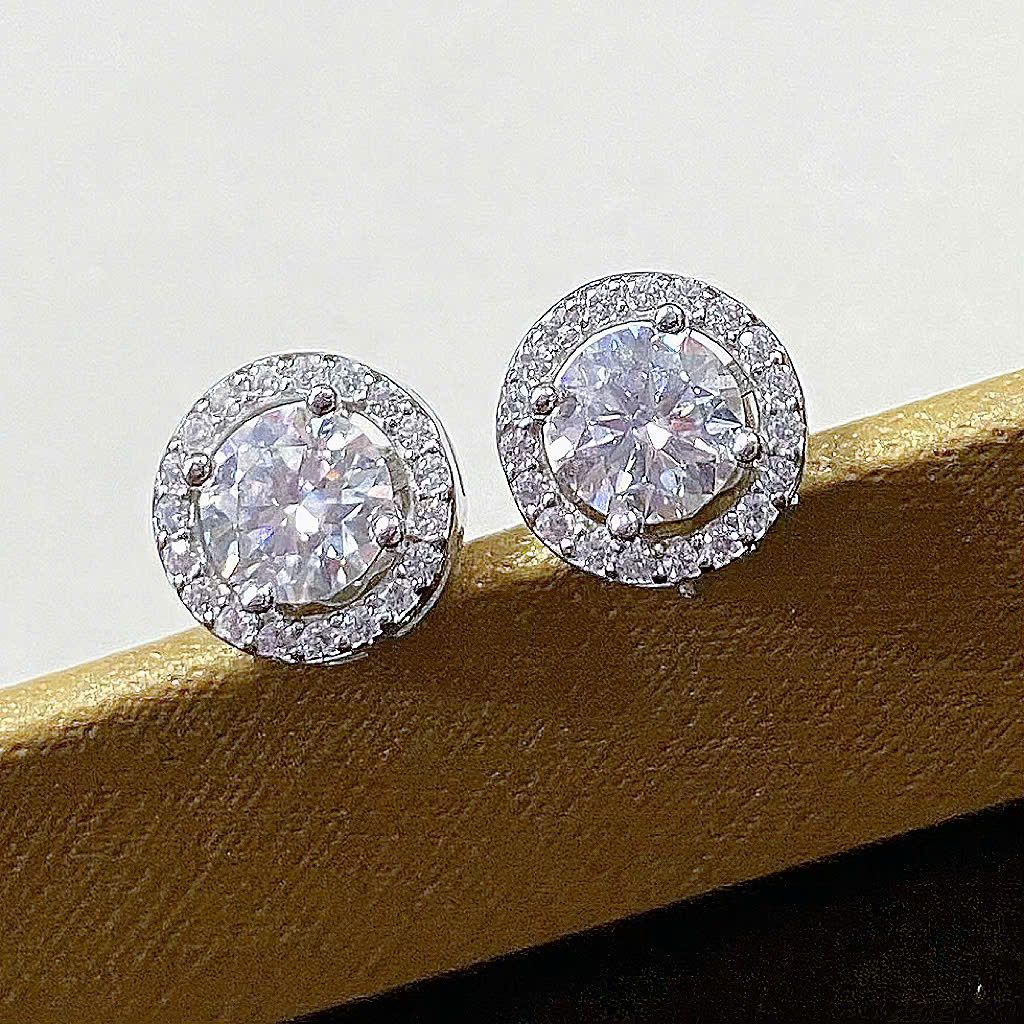 -Kiểu dáng: Bông tai bạc đính kim cương Moissanite