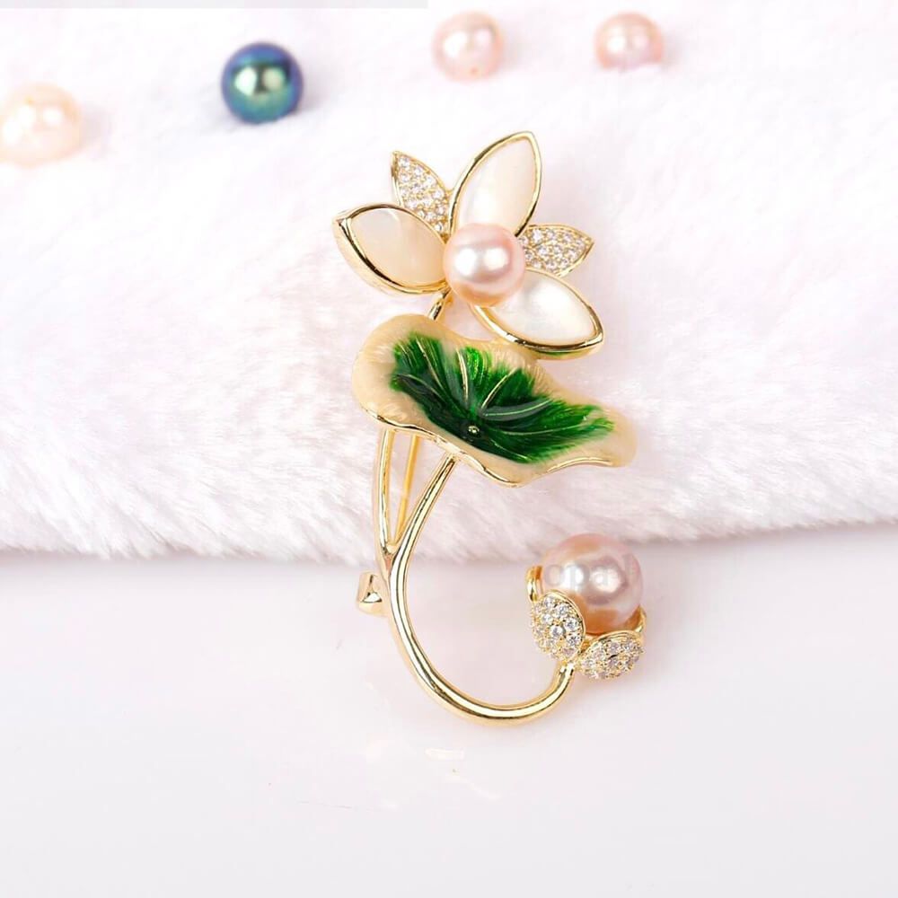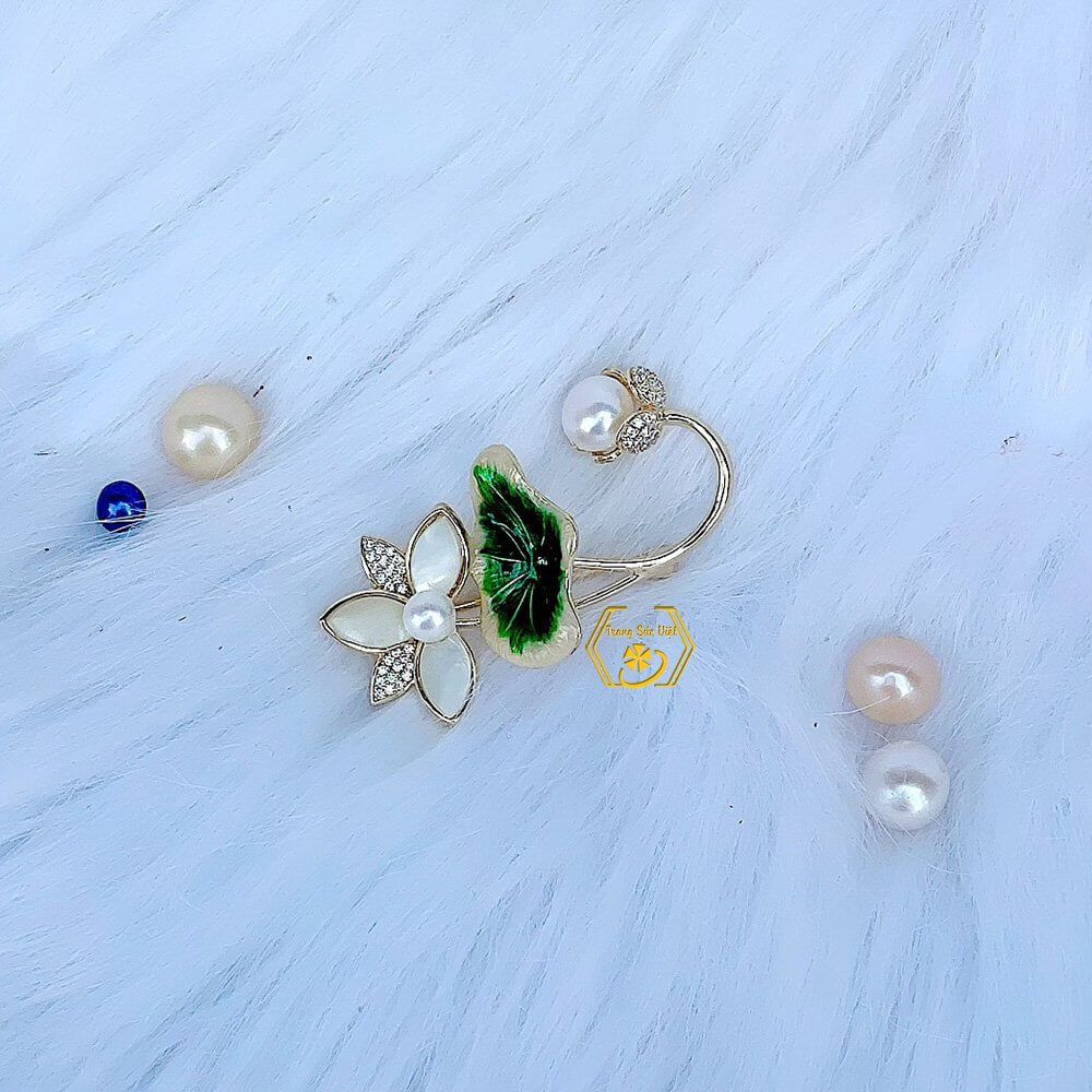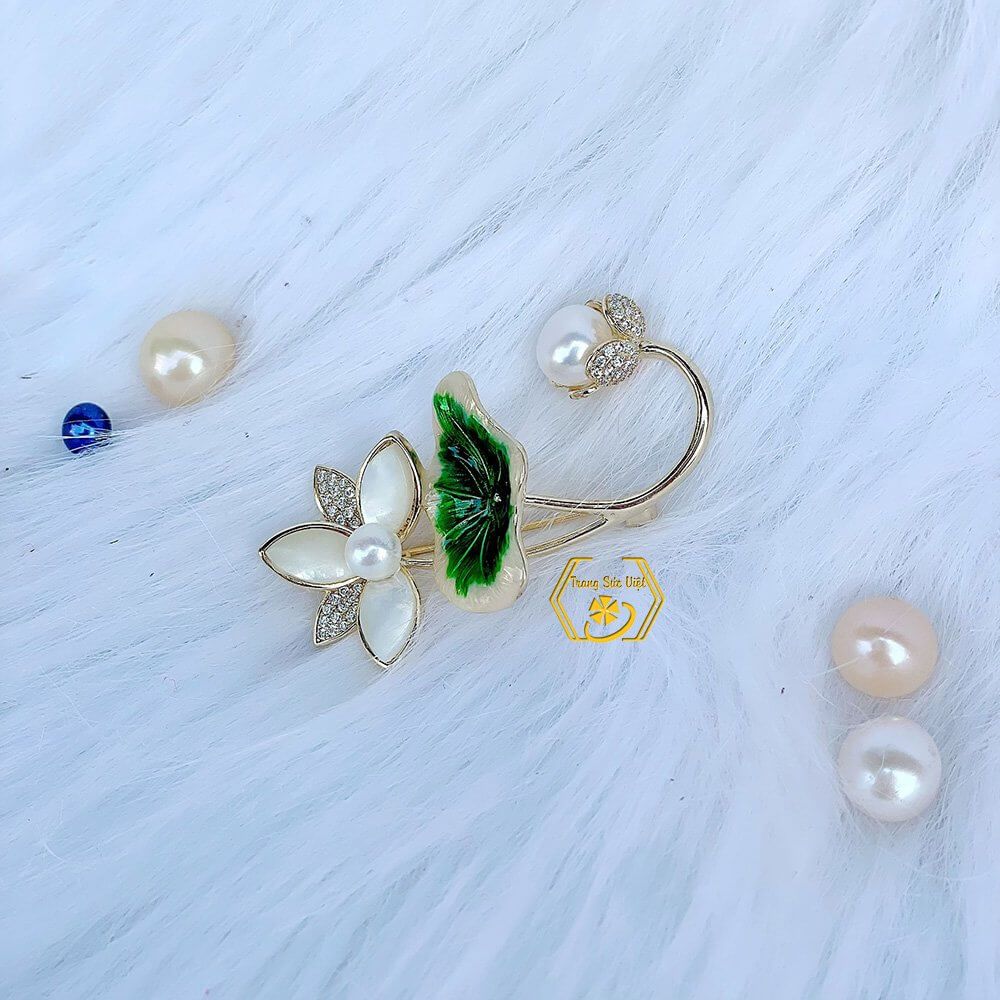 CÀI ÁO OPAL HOA SEN ĐÍNH ĐÁ VÀ NGỌC TRAI