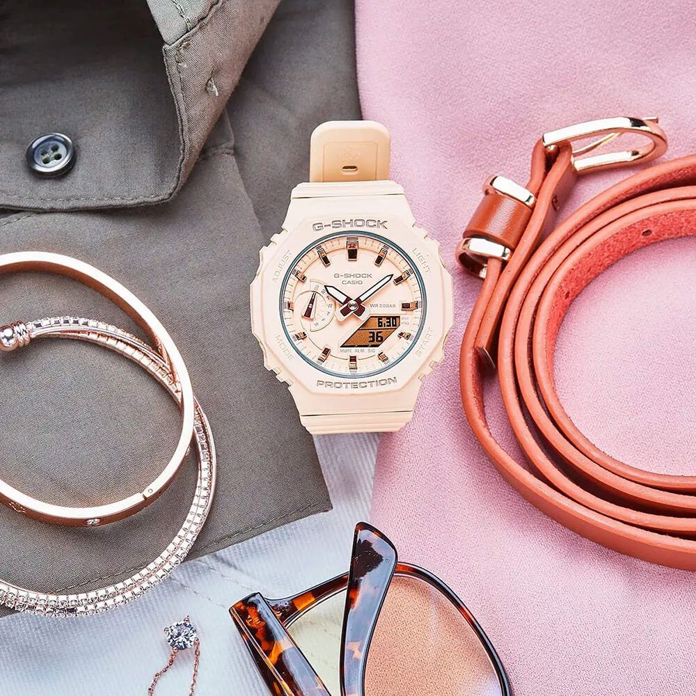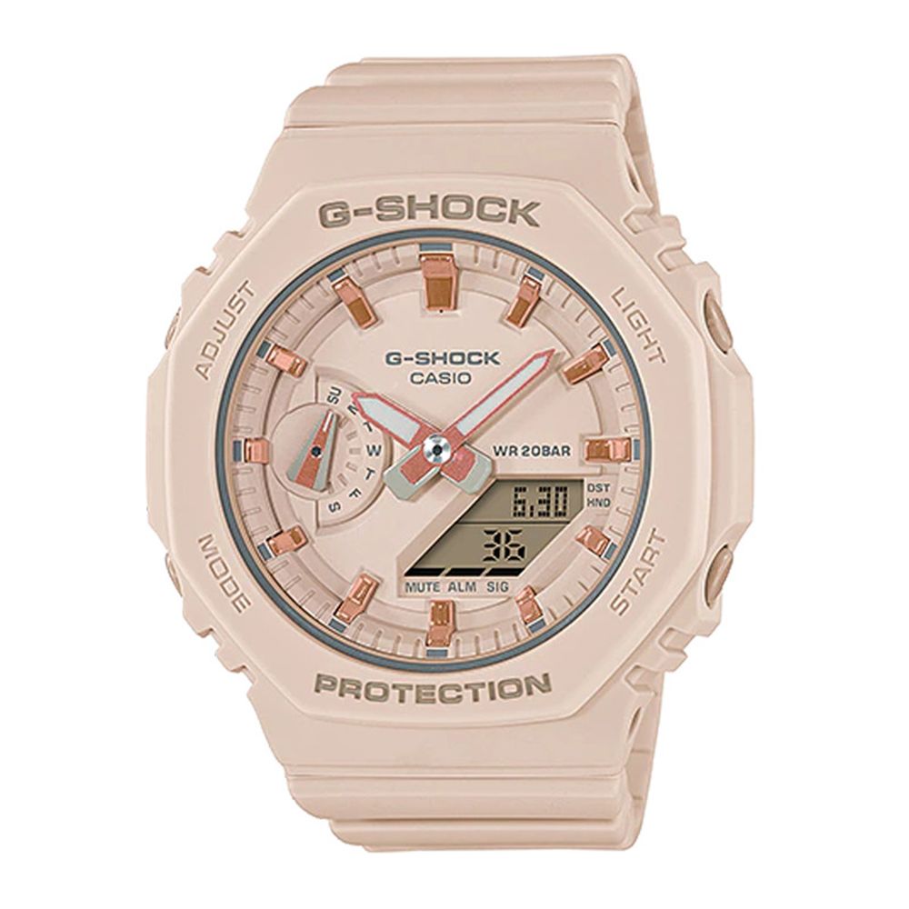 Phiên bản thu nhỏ của chiếc GA-2100 để tạo nên thiết kế đơn giản và thanh mảnh.Gờ bát giác, mặt đồng hồ phẳng, vạch giờ đơn giản.