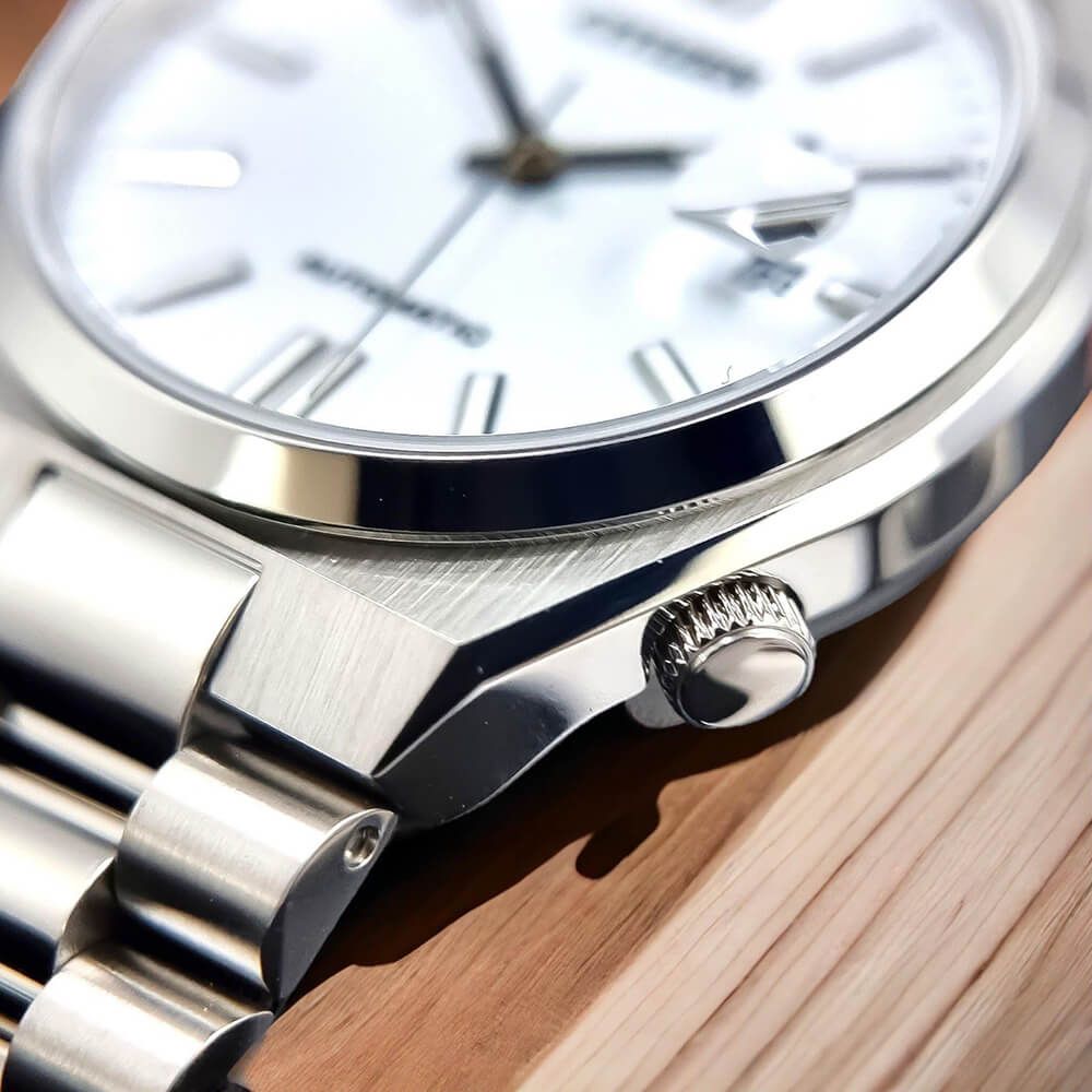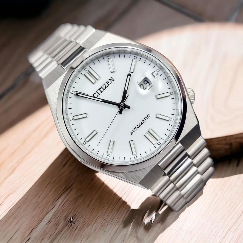 Citizen NJ0150-81A phong cách cổ điển sang trọng trang bị máy tự động trữ cót 40 giờ. Bộ dây đeo thép đánh bóng bắt mắt kết hợp mặt số trắng tinh tế.