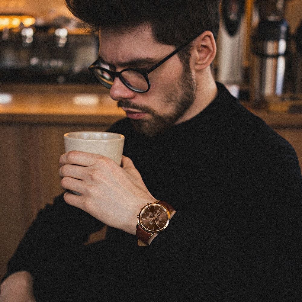 Thiết kế mặt số 6 kim thể thao đi kèm thêm dây da thêm phần trẻ trung và năng động. Với size mặt 42mm phù hợp với cổ tay to và vừa, mặt kính chống va đập.