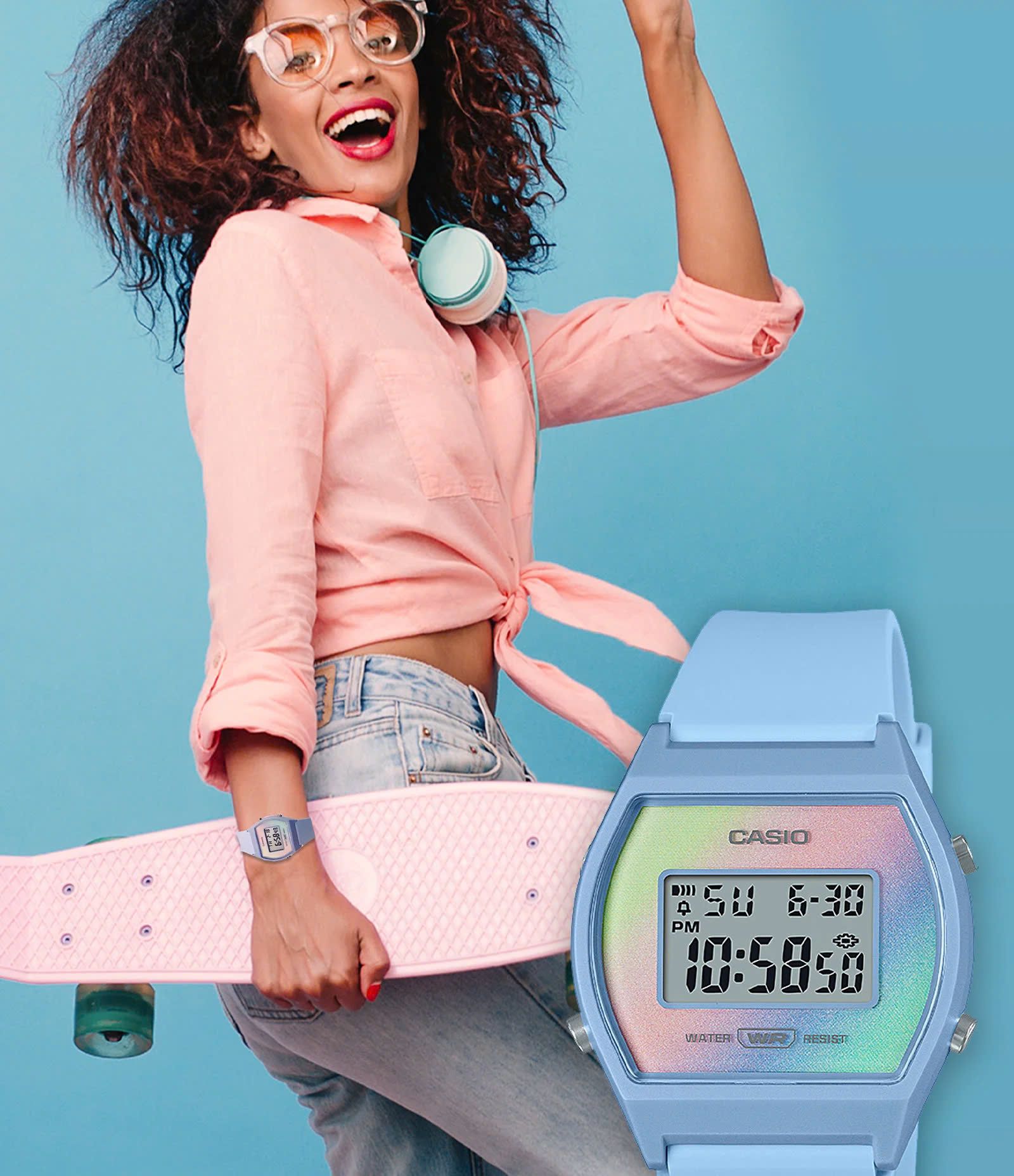 Đồng Hồ Casio LW-205H-2ADF có tông màu phấn nhạt và mặt số sặc sỡ. Ngoài ra, màu của mặt số cũng sẽ thay đổi tùy theo góc nhìn của bạn. Khả năng chống nước của những mẫu này ở độ sâu 50 mét.