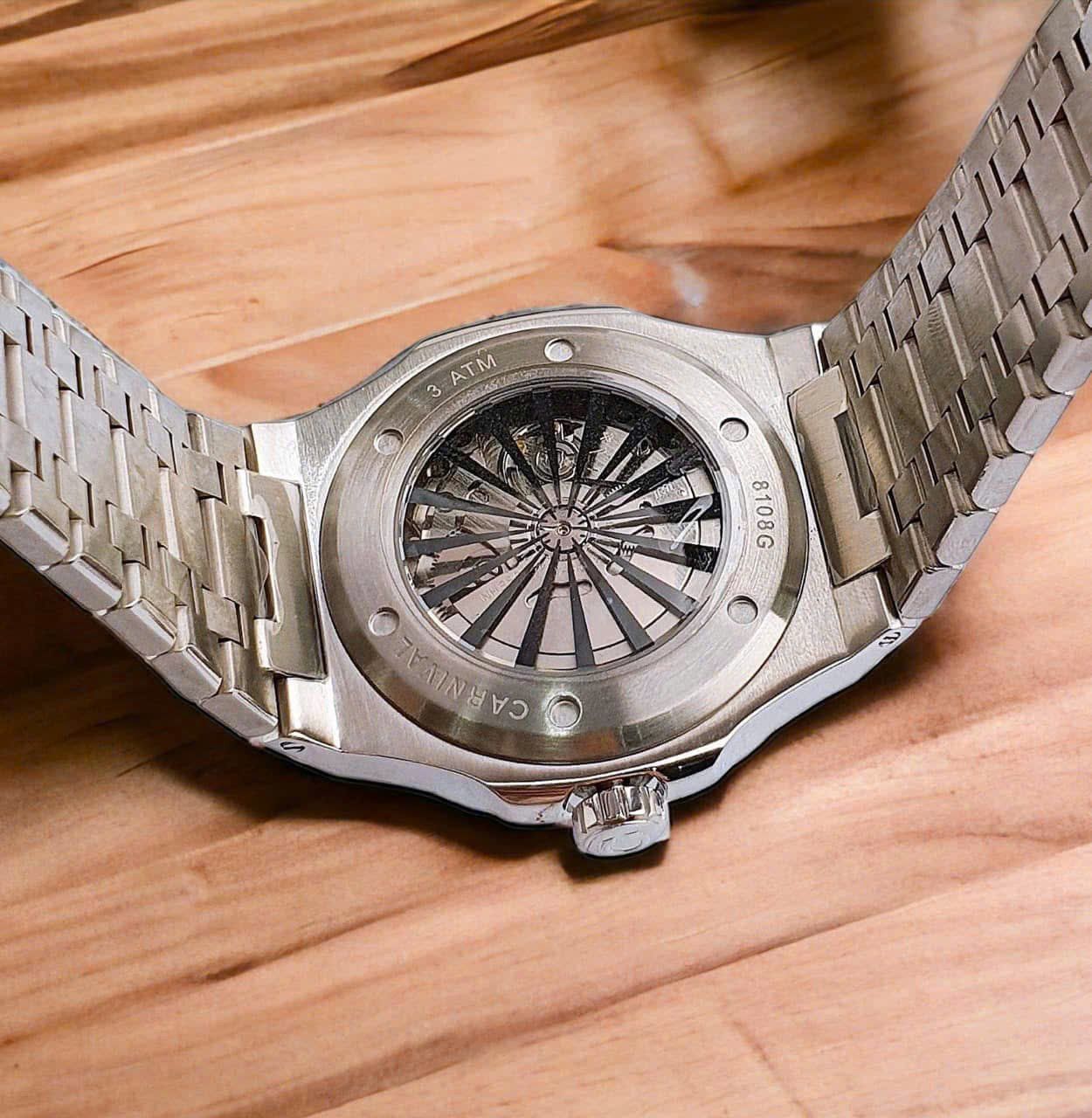 Carnival 8108G-VT-X là chiếc đồng hồ mang tinh thần thể thao kết hợp cổ điển – một thiết kế “lai” hoàn hảo dành cho các quý ông hiện đại. Lấy cảm hứng từ biểu tượng thiết kế Nautilus lừng danh, chiếc đồng hồ sở hữu dáng vỏ hình vuông bo tròn các góc, vừa nam tính mạnh mẽ, vừa mềm mại và tinh tế.