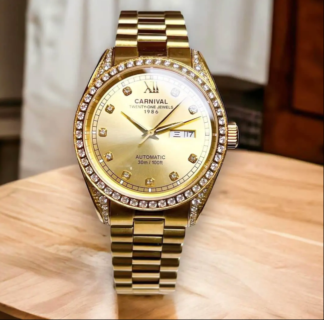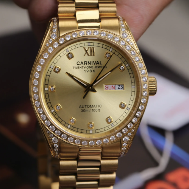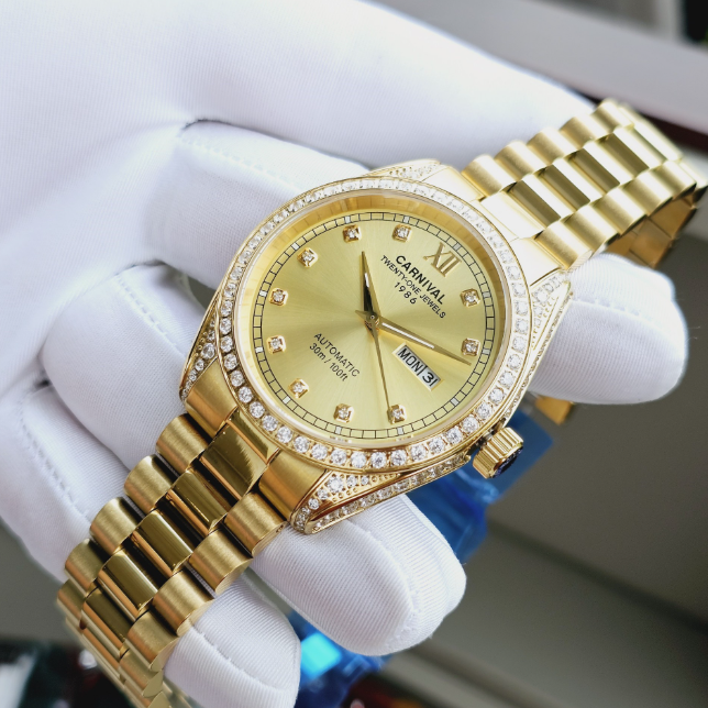 Carnival 8907G-VV-V – Đỉnh Cao Phong Cách Quý Ông, Với thiết kế full vàng đính đá tinh tế, Carnival 8907G-VV-V không chỉ là một chiếc đồng hồ mà là tuyên ngôn phong cách của người đàn ông lịch lãm. Sản phẩm lý tưởng cho mọi quý ông muốn thể hiện đẳng cấp.