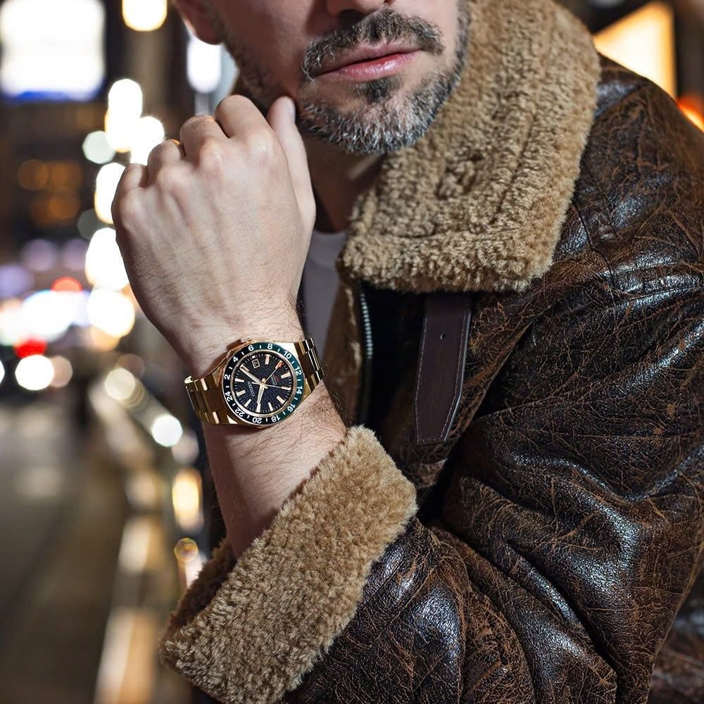 | Chức năng: | Lịch ngày GMT Dual Time Kháng từ |