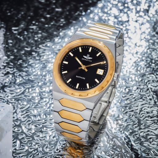 Đồng hồ nam SRWATCH SG7005.1201GM có thiết kế mặt tròn, thiết kế đồng nhất giữa vỏ và dây đeo thép không gỉ mạ vàng công nghệ PVD, xen kẽ 2 gam màu vàng/trắng mang đến cho người dùng phong cách sang trọng, mạnh mẽ. Các số và kim nổi bật, hài hòa trên mặt đồng hồ. Mặt kính sapphire chống xước cao cấp cùng chuẩn chống nước 5ATM tạo sự an tâm cho người dùng. Đồng hồ kèm chức năng lịch ngày tiện dụng.