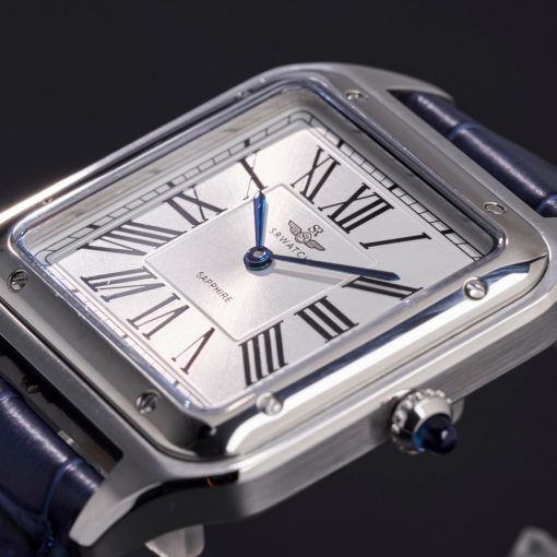 Đồng hồ nam SRWATCH SG7007.4103GM mặt vuông, vỏ trắng, số La Mã và 2 kim màu xanh nổi bật trên nền trắng. Mặt đồng hồ có vỏ thép không gỉ vượt thời gian, kết hợp với dây đeo bằng da màu xanh cao cấp.