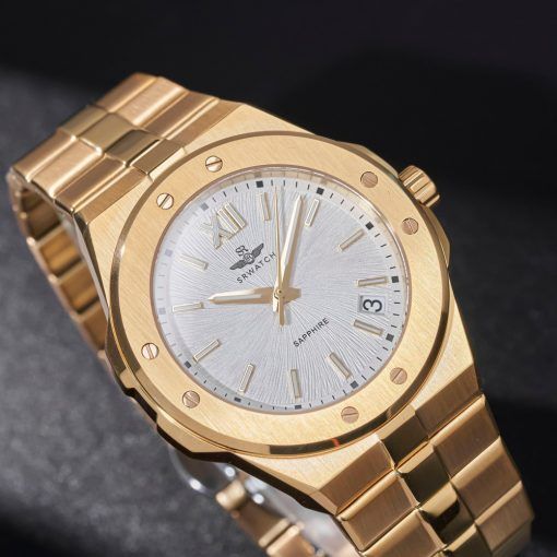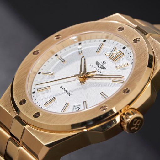 Đồng hồ nam SRWACTH SG7009.1402GM mặt tròn, vỏ vàng, vạch chỉ giờ vàng và 3 kim nổi bật trên mặt số trắng sang trọng. Mặt đồng hồ kết hợp với dây đeo bằng thép không gỉ mạ vàng công nghệ PVD chất lượng cao.