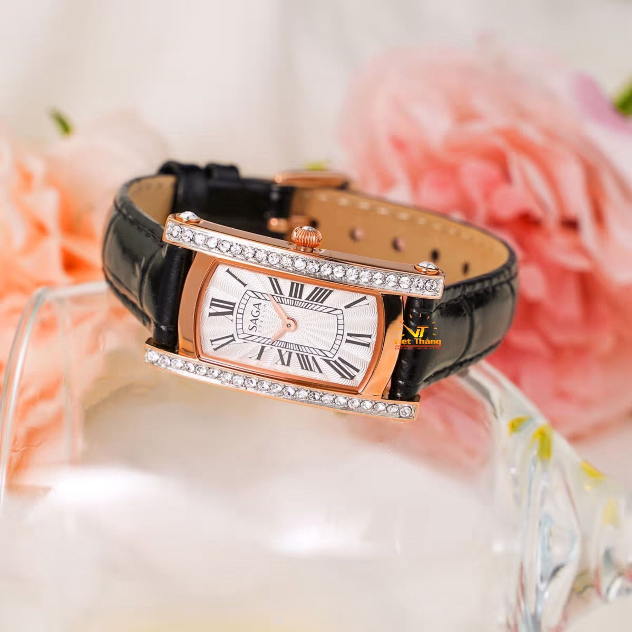 Saga Stella 71836-RGSVBK-2 – Nữ – Kính Cứng – Quartz (Pin) – Mặt Số 20mm, Đính Đá Pha Lê, Chống Nước 3ATM