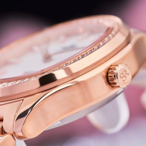 Đồng hồ nữ SL4001.1309 thiết kế sang trọng dành cho phái đẹp với vỏ máy bằng chất liệu thép không gỉ mạ vàng công nghệ PVD sang trọng. Viền đồng hồ và các cọc số được đính đá sang trọng. Bộ kim thiết kế bắt mắt trên độc đáo. Đồng hồ được trang bị lịch ngày tiện dụng. Mặt đồng hồ được bảo vệ bởi mặt kính sapphire cao cấp chống trầy, độ chống nước 5ATM mang đến sự an toàn cho người đeo.