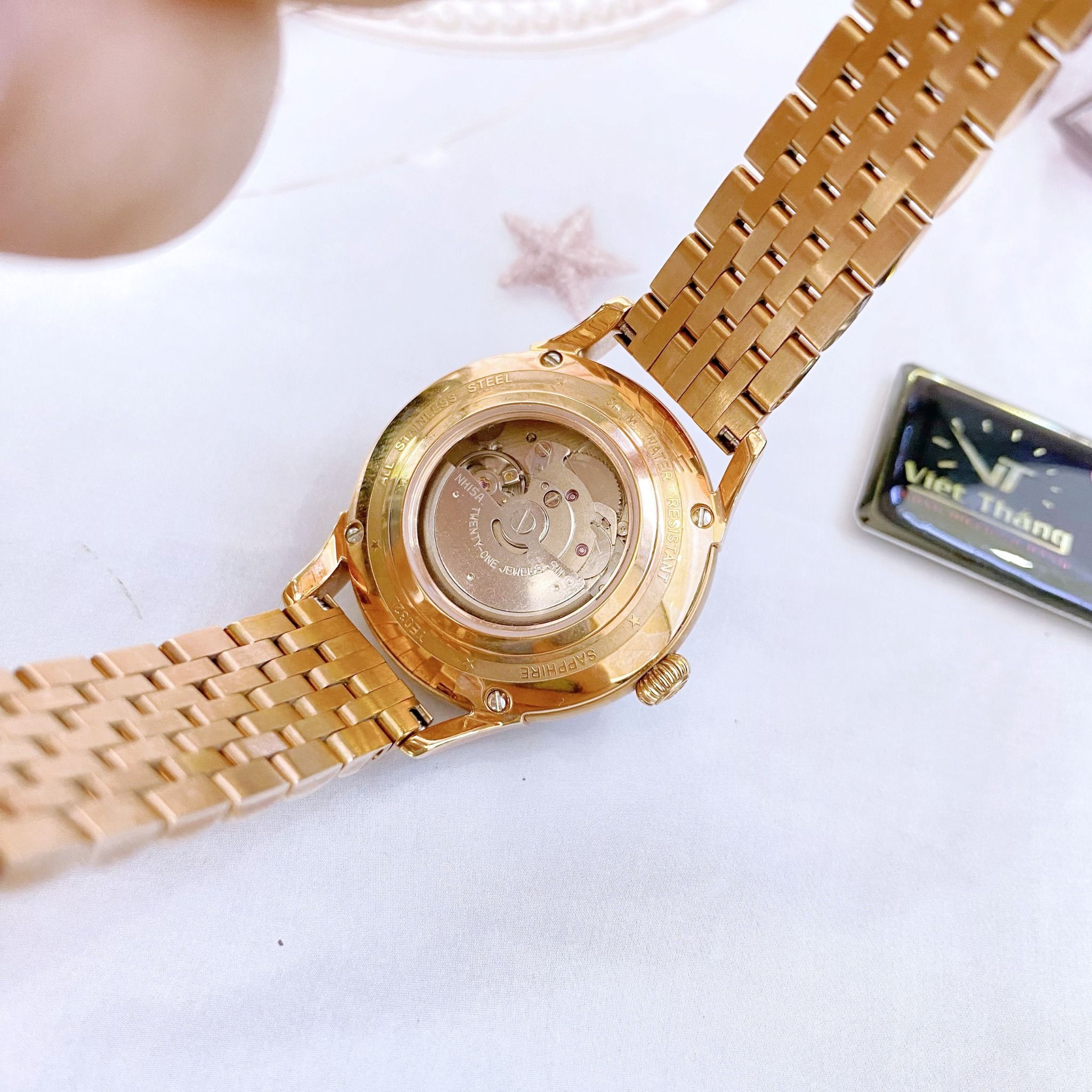 TOPHILL TE032L.M3288 - THIẾT KẾ SANG TRỌNG, QUÝ PHÁI GIÀNH CHO CHỊ EM, dáng vẻ của một chiếc đồng hồ nữ sang trọng, mang sắc thái tinh tế nhưng không kém phần quý phái với khung vỏ vàng hồng thời thượng và màu sắc cực kì bền, bóng theo thời gian.
