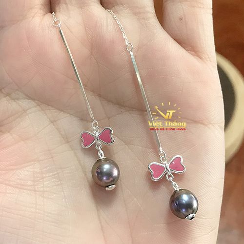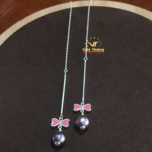- Tên sản phẩm : Bong tai bạc dáng dài nơ hồng