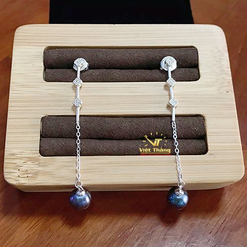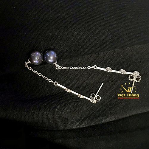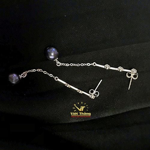 - Tên sản phẩm : Bong tai bạc dáng dài đính ngọc trai xanh navy