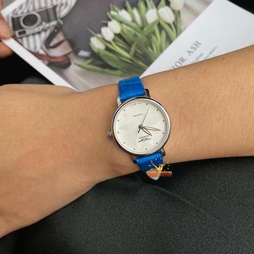 - Dây đeo chặt sẽ ngăn chặn không khí lưu thông qua mặt dưới dây da và gây ra triệu chứng phát ban mồ hôi trên cổ tay. Nếu dây da bị ẩm ướt do mồ hôi Quý khách nên lau khô với vải mềm loại thấm nước. Tránh để đồng hồ trong ánh nắng trực tiếp. Màu sắc dây da có thể bị phai màu.