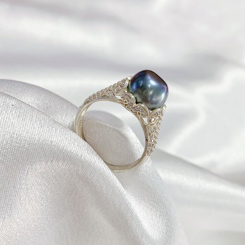 NHẪN OPAL BẠC Ý ĐÍNH ĐÁ NGỌC TRAI