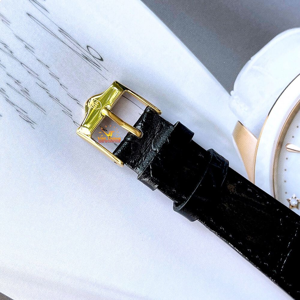 - Dây đeo chặt sẽ ngăn chặn không khí lưu thông qua mặt dưới dây da và gây ra triệu chứng phát ban mồ hôi trên cổ tay. Nếu dây da bị ẩm ướt do mồ hôi Quý khách nên lau khô với vải mềm loại thấm nước. Tránh để đồng hồ trong ánh nắng trực tiếp. Màu sắc dây da có thể bị phai màu.