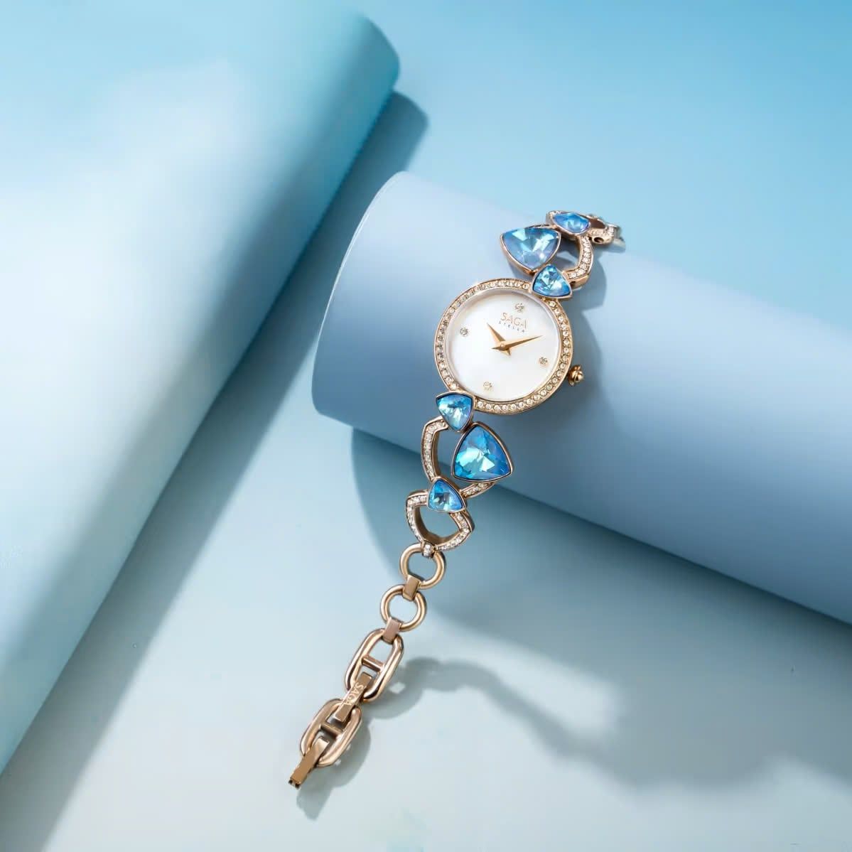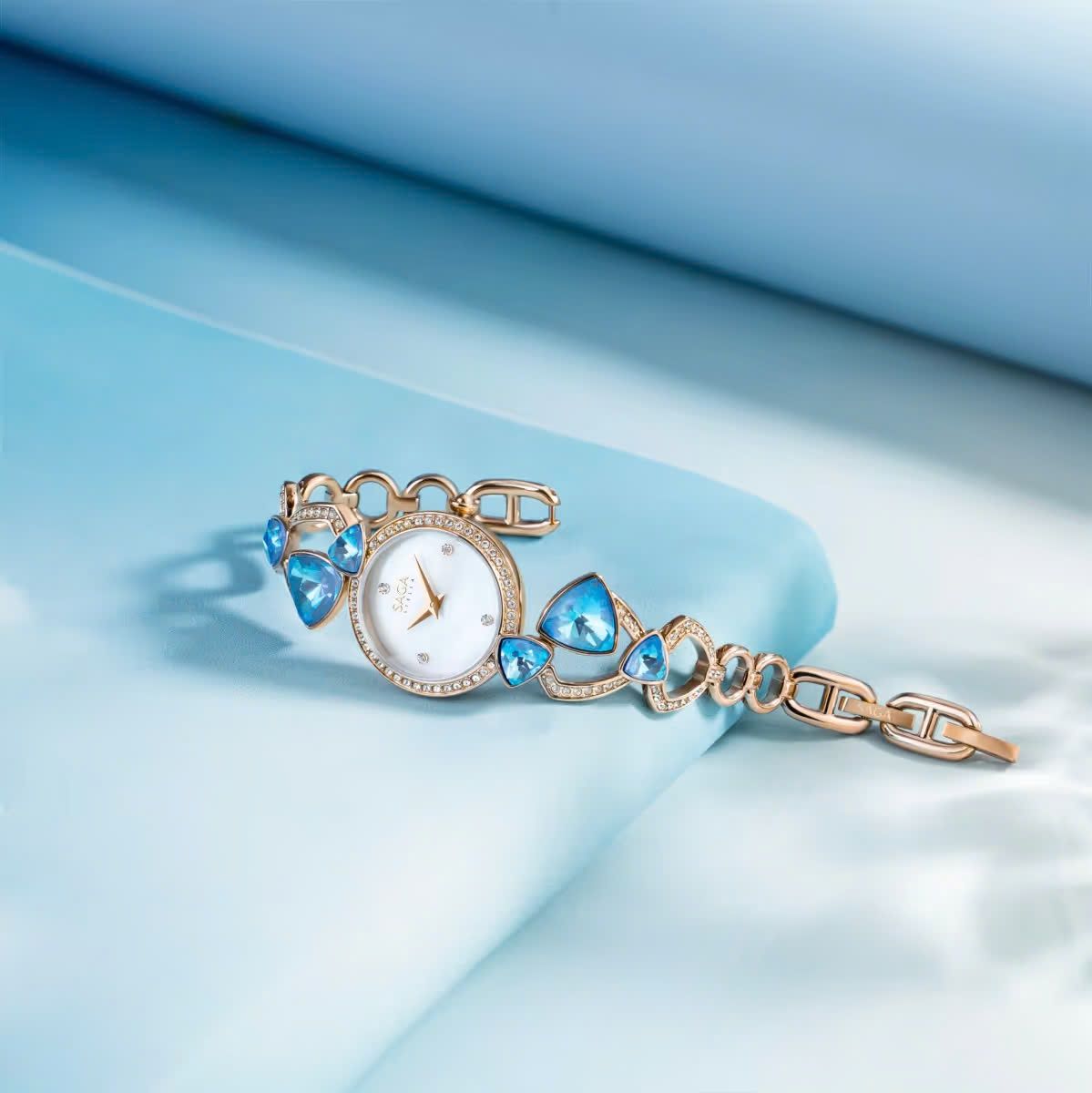 Saga 53767-CGMWBL-2 – Nữ – Quartz (Pin) – Dải ngân hà lung linh trên vòng tay – Sắc xanh huyền diệu từ những viên ngọc lấp lánh