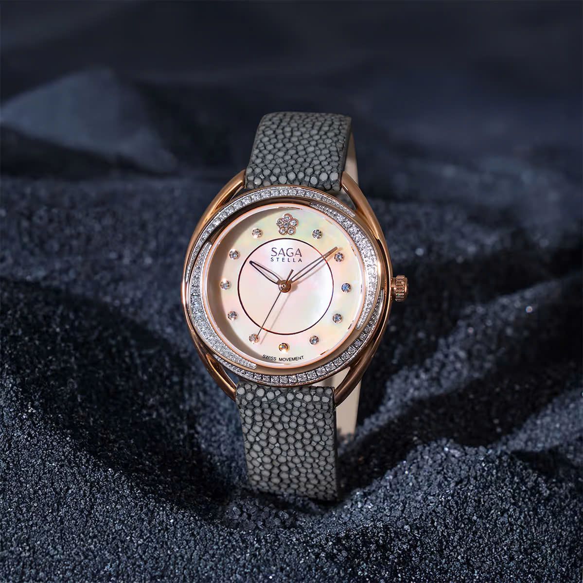 Saga Crush 53628-RGMGGE-2 – Nữ – Quartz (Pin) – Mặt Số 33mm, Đính Đá Swarovski, Khảm Xà Cừ