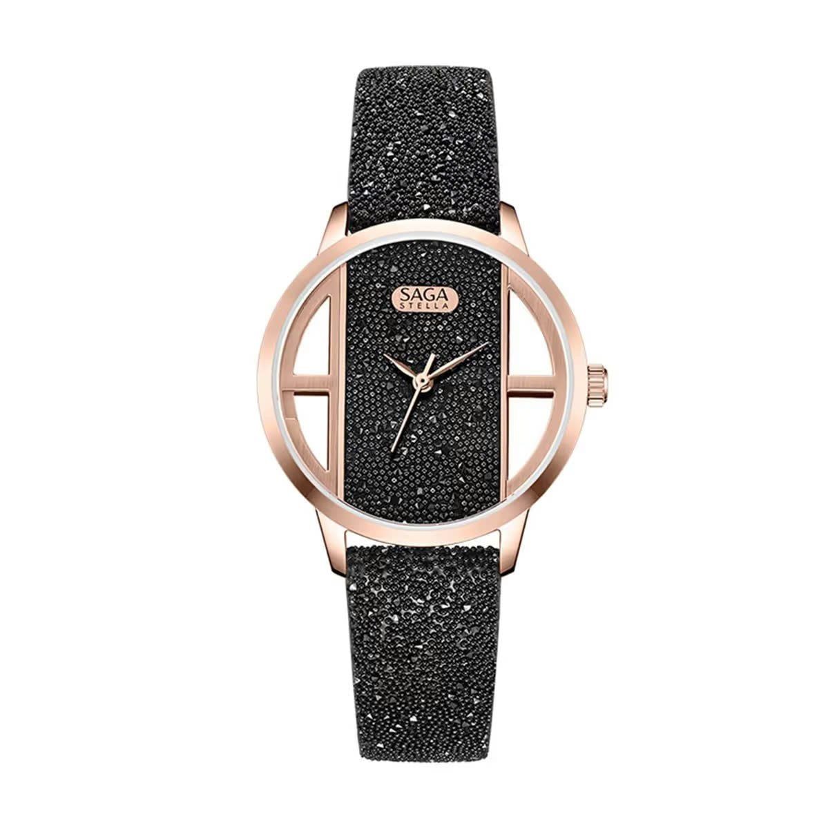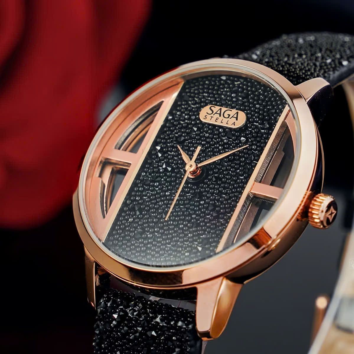Saga Stella 53623-RGBCFBCF-2 – Nữ – Kính Cứng – Quartz (Pin) – Mặt Số 34.5MM, Dây Đeo Đính Đá Swarovski, Chống Nước 3ATM