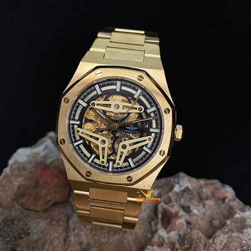 -Chất liệu vỏ: Thép không gỉ Stainless Steel 316L mạ vàng công nghệ PVD