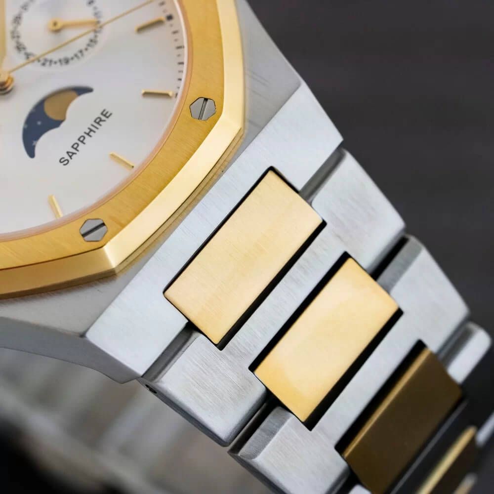 -Chất liệu vỏ: Thép không gỉ Stainless Steel 316L + Mạ vàng công nghệ PVD